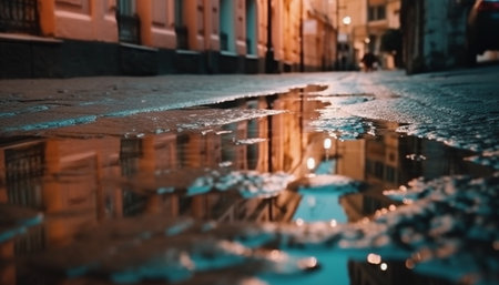 Old city architecture reflects in wet canal at dusk generated by artificial intelligence