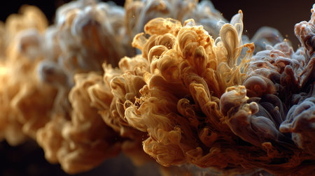 Golden ink in water creating soft, dreamy swirls in a high-contrast luxury-themed photo