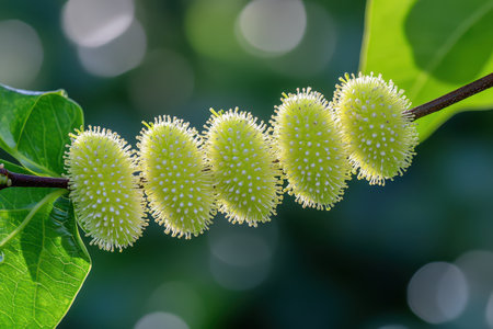 Bunch of unripe green flowers on a branch in the garden