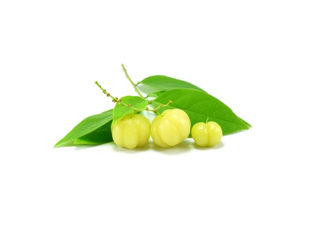 Star gooseberry and leaves on white background