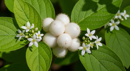 White berries of Symphoricarpos albus known as common snowberry on a bush