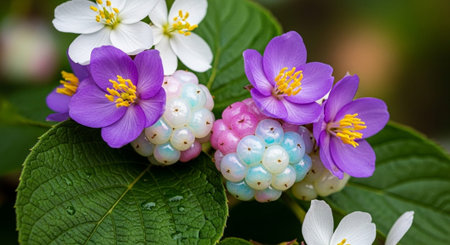 Delicate flower blossom amidst green foliage - nature's beauty on display.