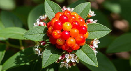 Fresh organic blueberrys on the bush. Vivid colors.