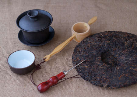 pu-erh tea for drinking ceremony. Traditional chinese beverage and popular antioxidant drink from China.