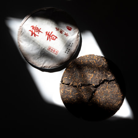 The ripe pu-erh tea cake, traditional Chinese black tea from Yunnan province in the natural background.