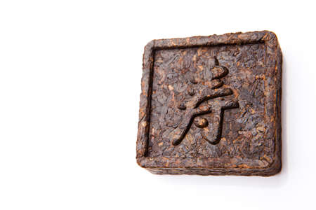 A piece of chinese tea shu puer isolated on white background. Fermented traditional tea
