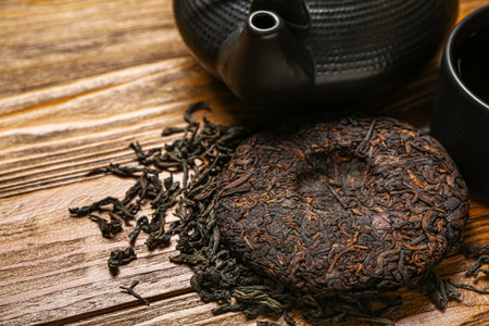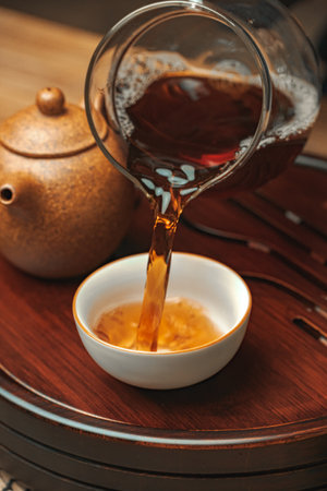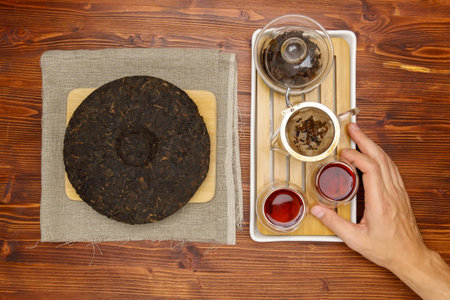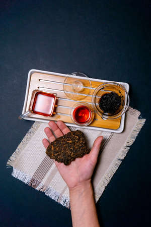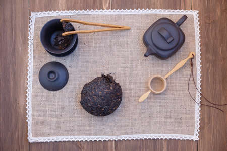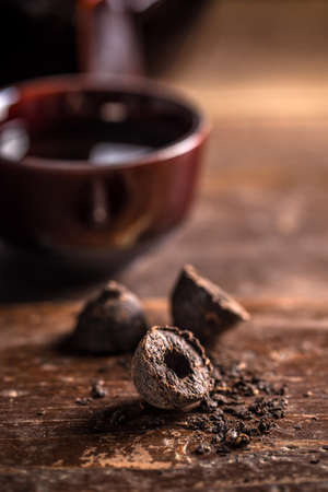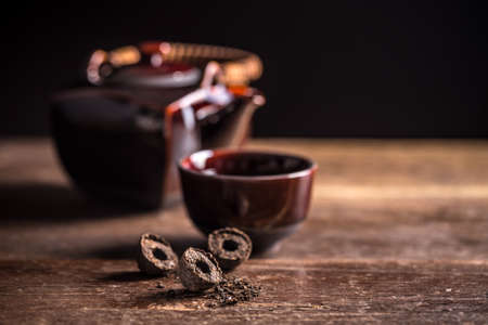 pu-erh tea for drinking ceremony. Traditional chinese beverage and popular antioxidant drink from China.