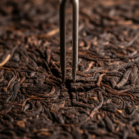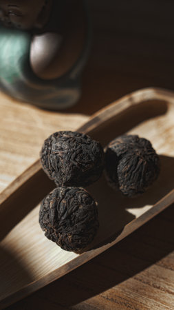 tea Shu Puer food drink healthy lifestyle concept. dark background. Closeup. Top view.
