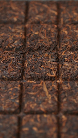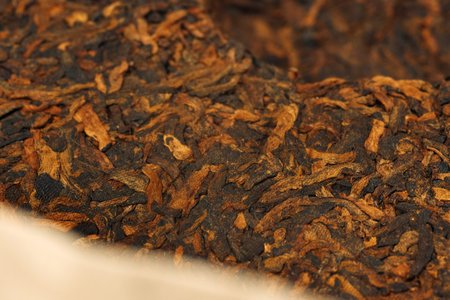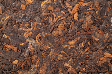 Chinese Pressed Fermented Black Pu-erh Tea Close-Up Macro Photography