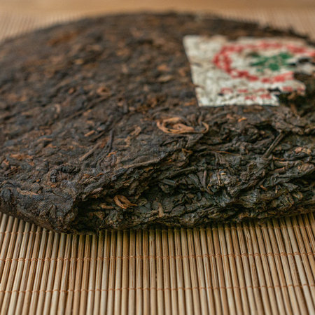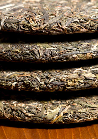 Close-up tea detail of Yunnan Pu'er raw tea tea cake