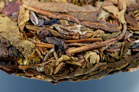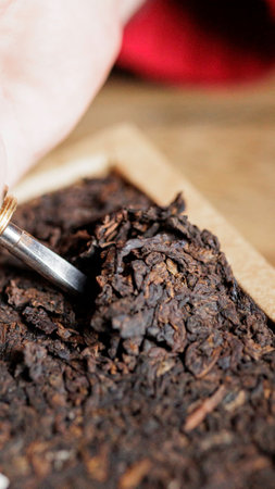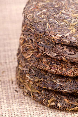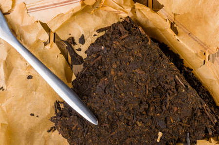 Old Shu Puerh Chinese fermented black tea, macro photo, selective focus