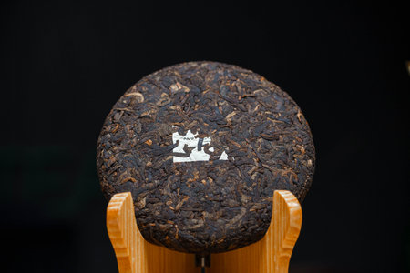 The Traditional Compressed Tea Cake is elegantly displayed for everyone to enjoy