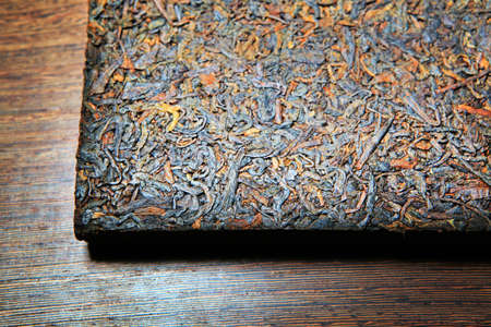 Old Pressed Puer Tea Leaves Block Texture. Macro Closeup.