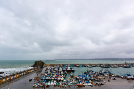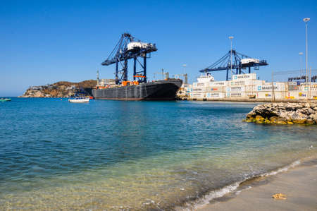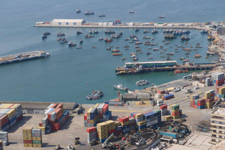 Arica, Chile - October 20, 2013 : Aerial view of the sea port of the Arica city on October 20, 2013 in Arica, Chile.
