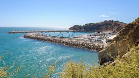 Port of the city of Santiago del Teide, a town on the south coast of the island of Tenerife, Canary Islands, Spain. Boats moored sheltered from the inclemencies of the Atlantic Ocean.