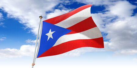 Puerto Rico flag blowing in the wind. Full page flying flag. 3d illustration