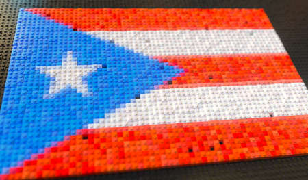 Plastic toy blocks compose flag of Puerto Rico, 3d rendering