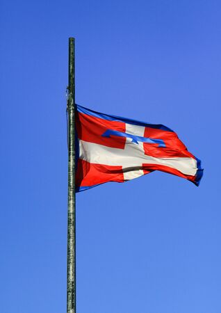 Puerto Rico state flag fly with blue sky in San Juan.