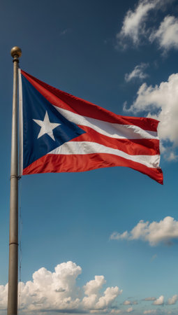 Beautiful Puerto Rican flag against a blue sky