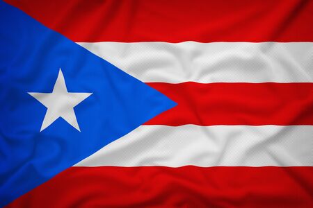 Realistic flag of Puerto Rico on the wavy surface of fabric.
