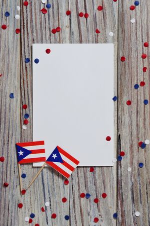 Puerto Rico abstract blurry bokeh flag. Christmas, New Year and National day concept flag.