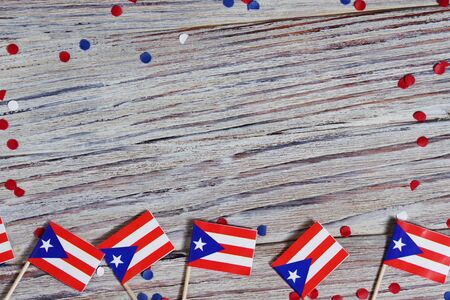 Puerto rico flag on rustic old wood surface background