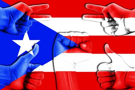 hands on Pueto Rico flag background