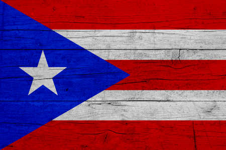 Puerto Rico Flag painted on old wood background