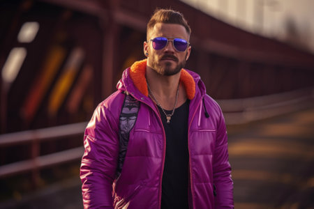 A man in a purple jacket and sunglasses, AI