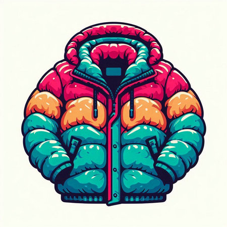 Glossy colorful puffer jacket. Generative AI. high quality illustration