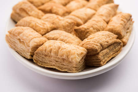 Khari Puff biscuit or crispy pastry is an Indian tea time snack