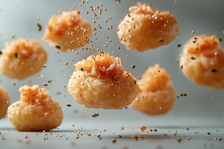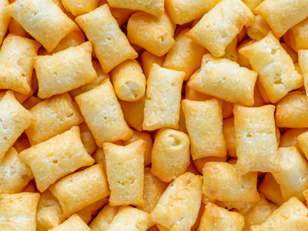 A close-up view of crunchy snack puffs sprinkled with vibrant orange spices creates a visually appealing culinary scene perfect for food enthusiasts.