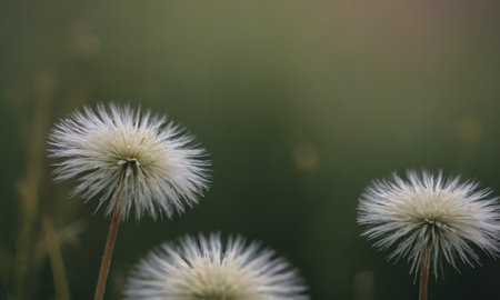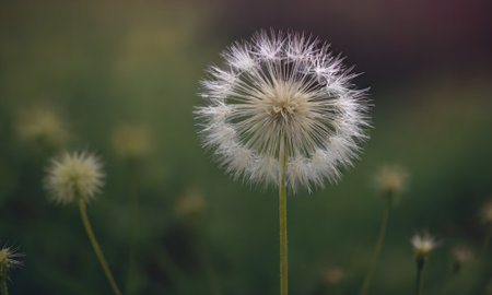 white dandelion flower on green background with bokeh effect