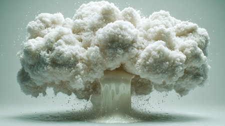 A striking scene showcasing a dramatic explosion of white cloud-like texture, creating a captivating visual effect in a bright indoor space.