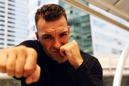 the guy is fighting. The first close-up. An evil brawler. The man is isolated