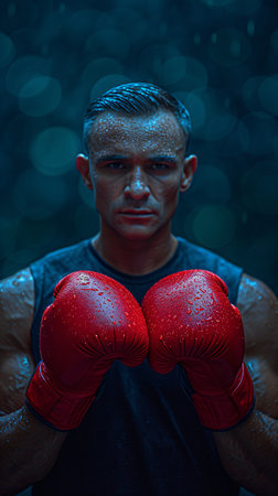 Focused athlete embodies determination in boxing stance ready to compete. Concept Sports Photography, Boxing, Determination, Athlete, Competition