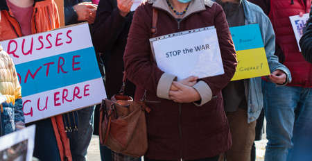 War in Ukraine support with poster, Strasbourg, France, Russian consulate February 2022