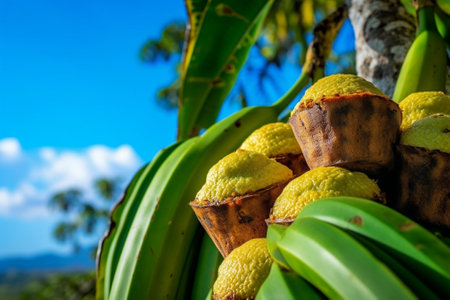 Close Encounter with a Tropical Fruit Hanging Delicately from a Tree