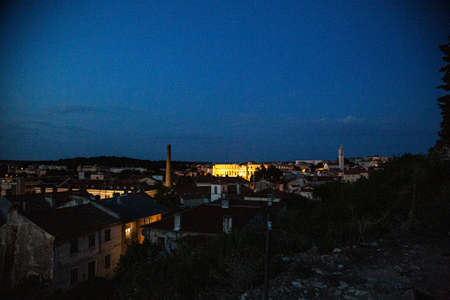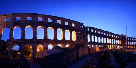 Ancient Roman Amphitheater at night in Pula, Istrian Peninsula in Croatia