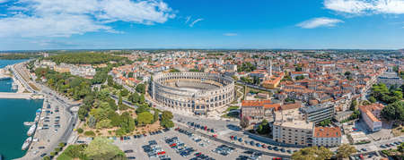 Aerial panorama of Pula harbor, Istria, Croatia.