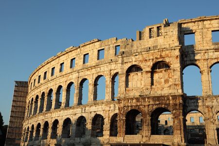 parts of the Roman amphitheater in Pula which is the sixth largest amphitheater of antiquity, Croatia.