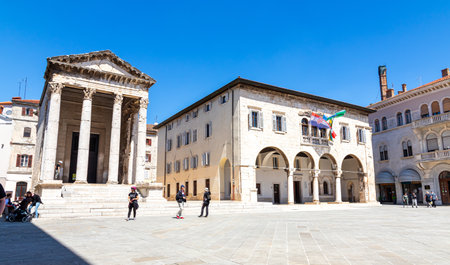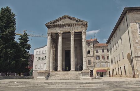 Facade of Temple of Augustus (Augustov hram), a well-preserved Roman temple in Forum Square in the city of Pula, Croatia