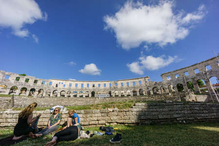 Pula, Croatia - August 29, 2013: Amphiteater at Pula, Croatia. Roman arena