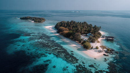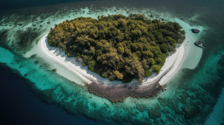 An aerial view of a small island in the middle of the ocean. AI generative image.