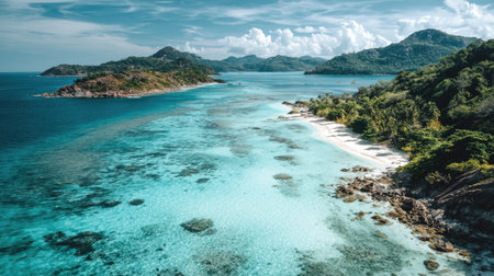 Tropical island paradise with white sand beach and turquoise waters awaiting relaxation