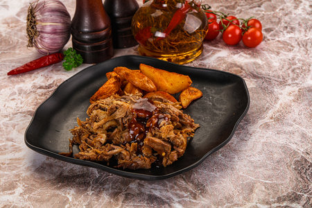 Baked shredded pork with potatoes and spices