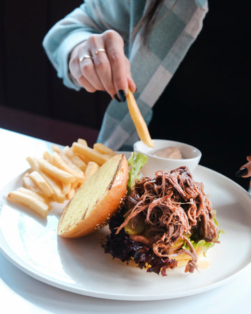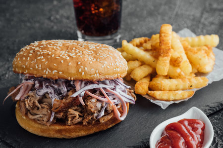big tasty pulled pork burger with french fries