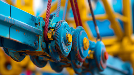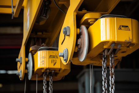 The Beauty of Mechanization: A Macro Shot of Industrial Hoists in a Manufacturing Plant