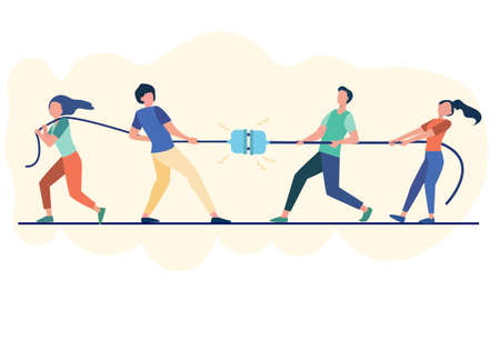 A group of people tug-of-war Everyone on the team, male or female Help each other all the way to victory vector illustration for game contest competition confrontation concept