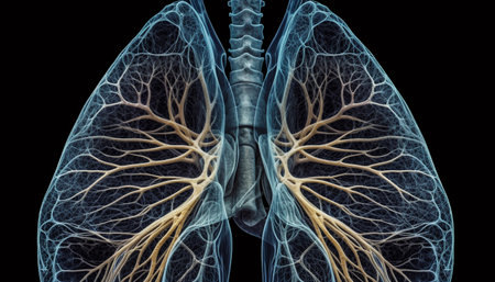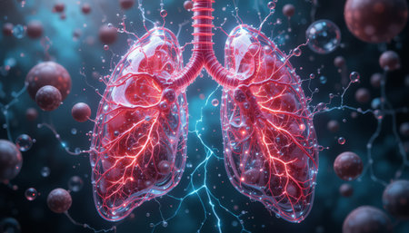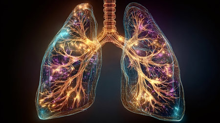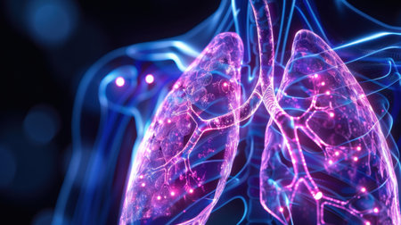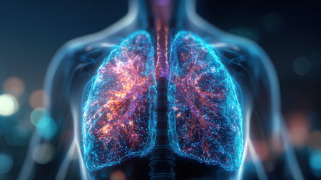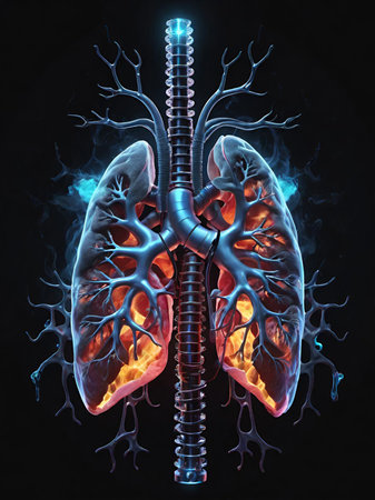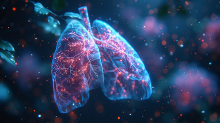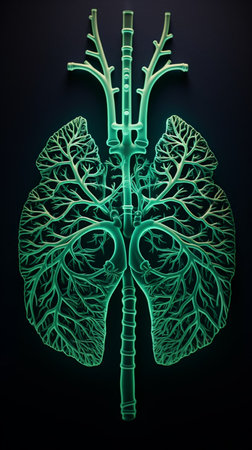 Stunning Representation of Human Lungs Highlighting Airflow and Respiratory System at Night